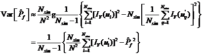 對式所示的失效概率估計值求數學期望和方差分別有以下兩式成立。