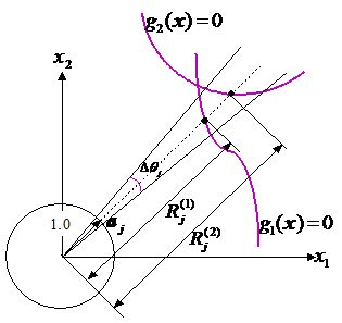 個(gè)失效模式對(duì)應(yīng)的失效邊界交點(diǎn)處的特征半徑。如圖5.2所示。